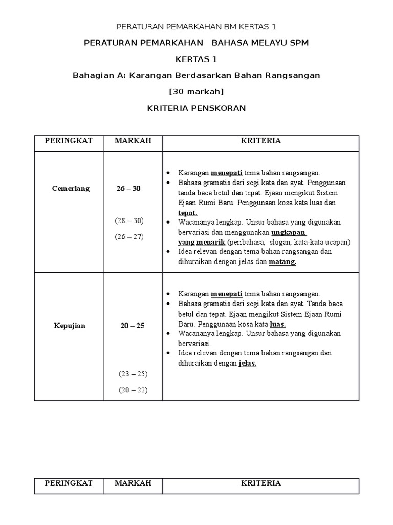 Peraturan Pemarkahan Kertas 1 Bahasa Melayu Spm Pdf